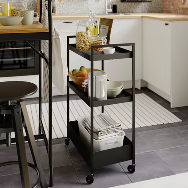 This utility cart fits in the smallest of spaces and can be moved to wherever you need it. Use it as extra storage for all your kitchen utensils, desk accessories or for gloves, keys and mobile phones.
